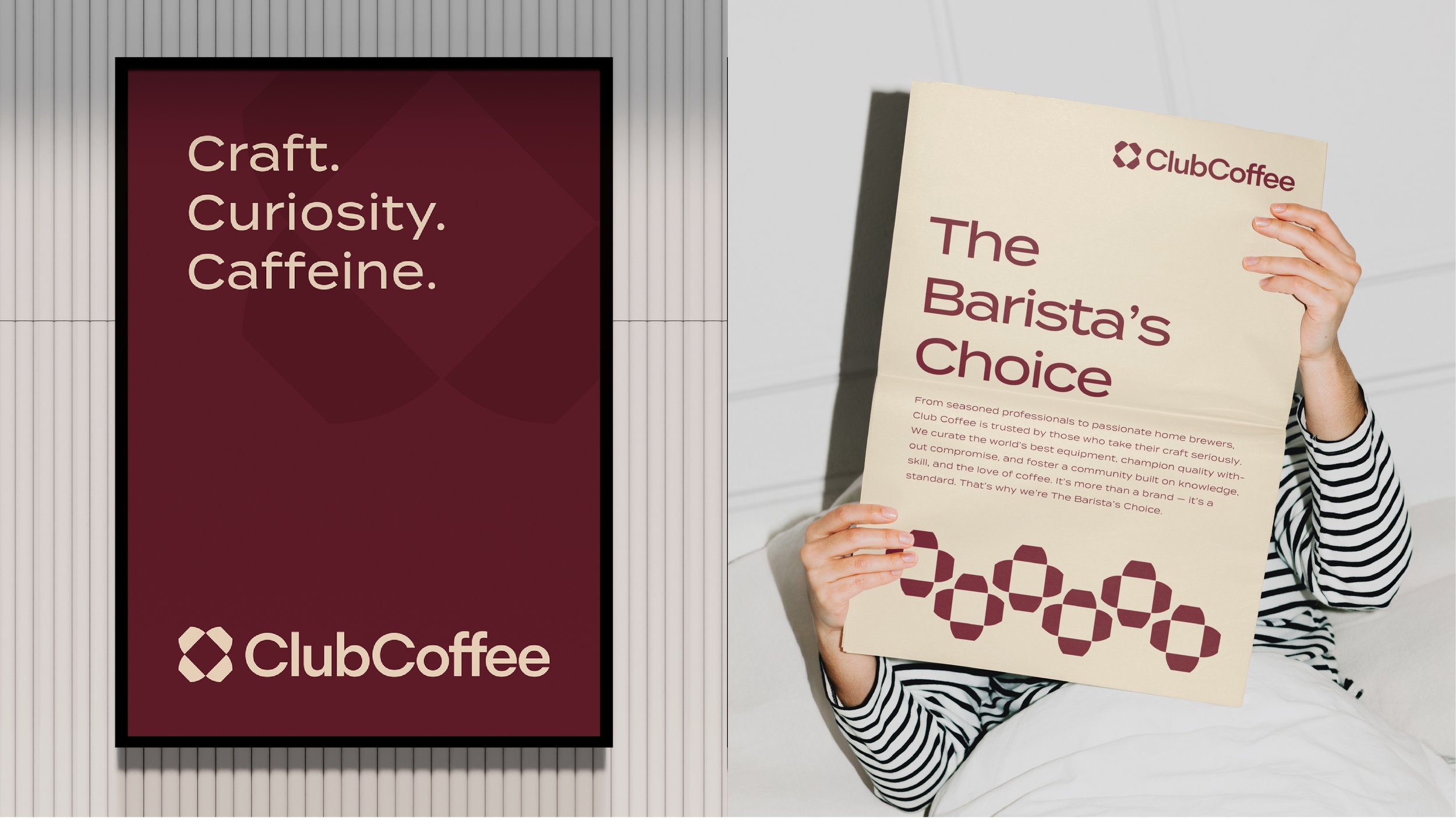Branding and packaging design for Club Coffee, a speciality coffee and barista supplier.